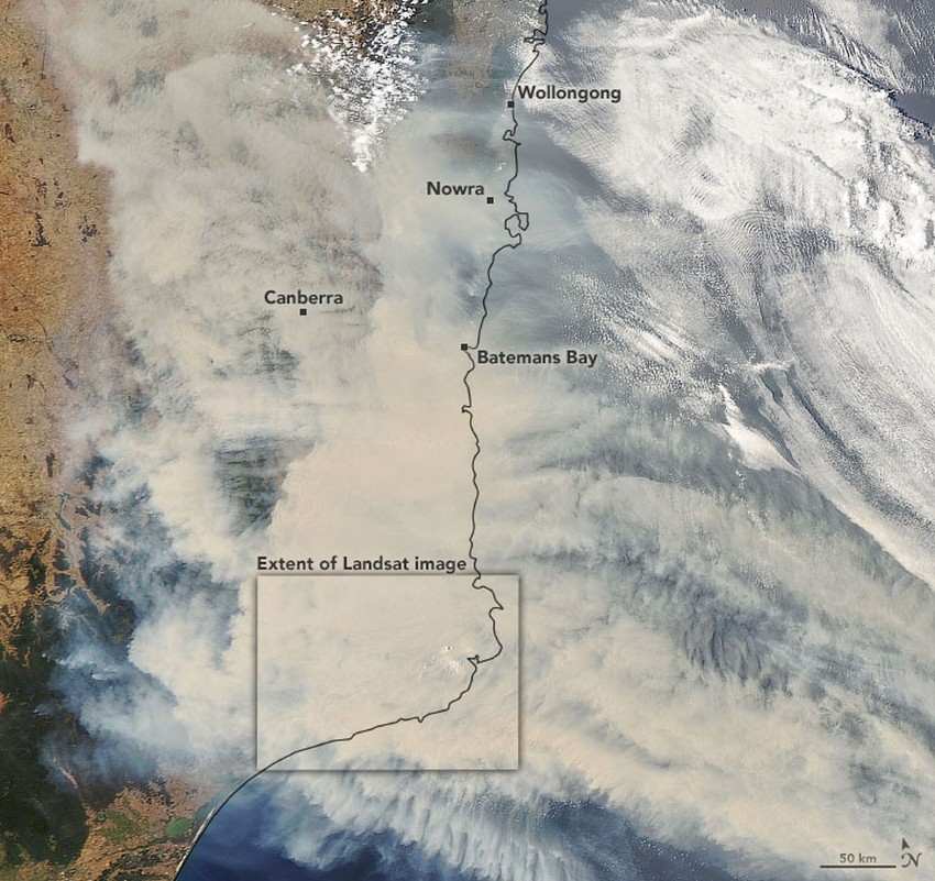 دخان الحرائق الكثيف يغطي جنوب شرق أستراليا كما يظهر من الفضاء